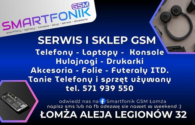 Serwis i Sklep GSM Smartfonik GSM Łomża ul. Aleja Legionów 32 tel. 571939550 Orerujemy naprawy telefonów laptopów ...
